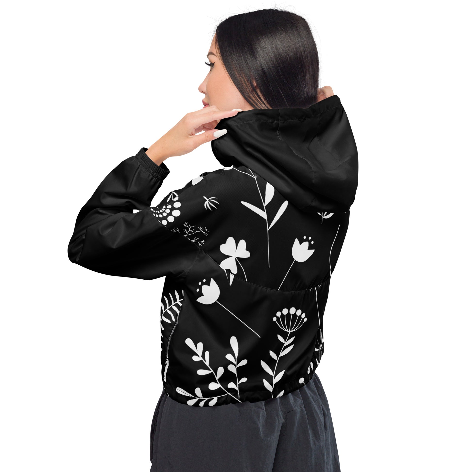Damen-Cropped Windbreaker schwarz/weiß Blumen Print